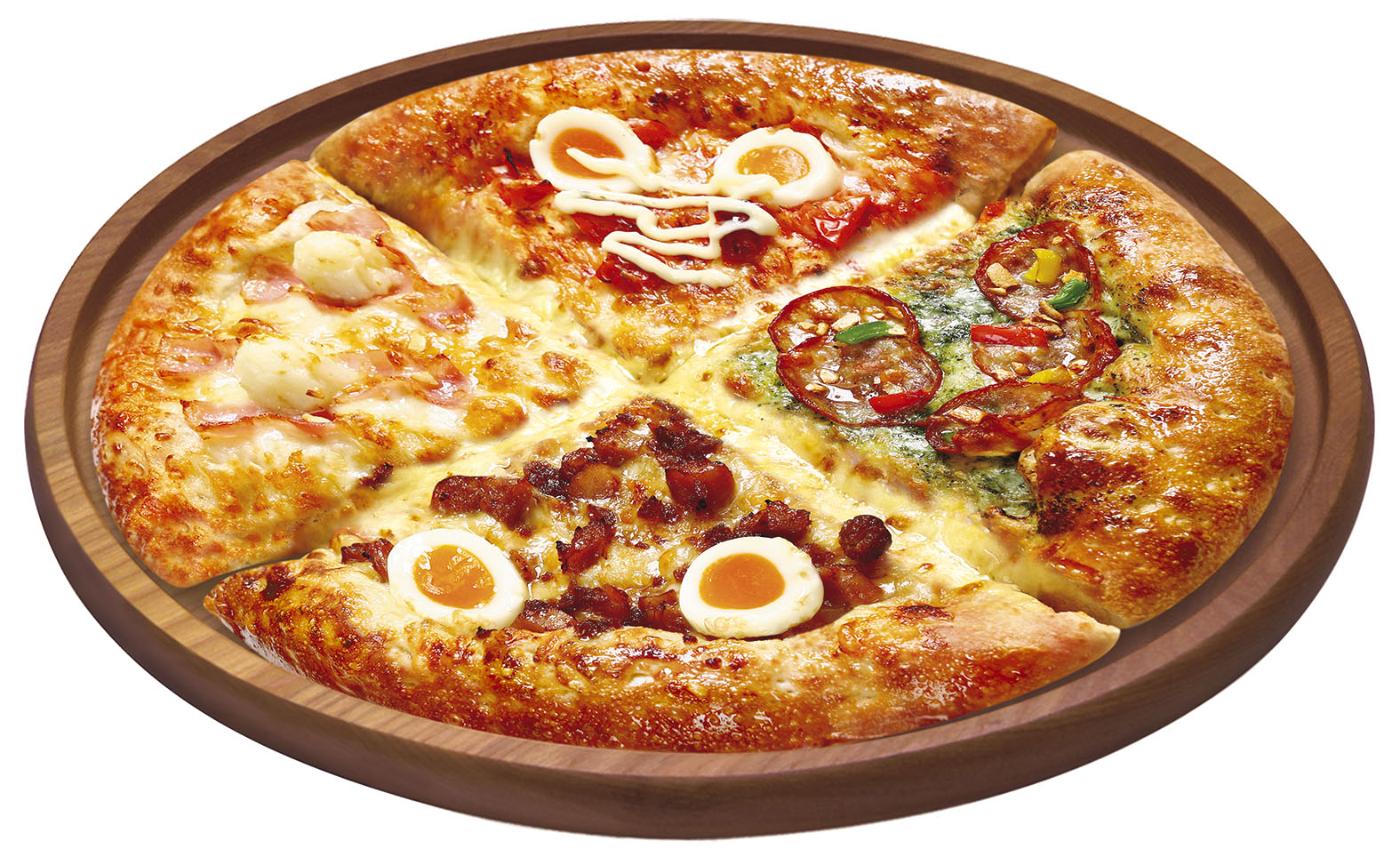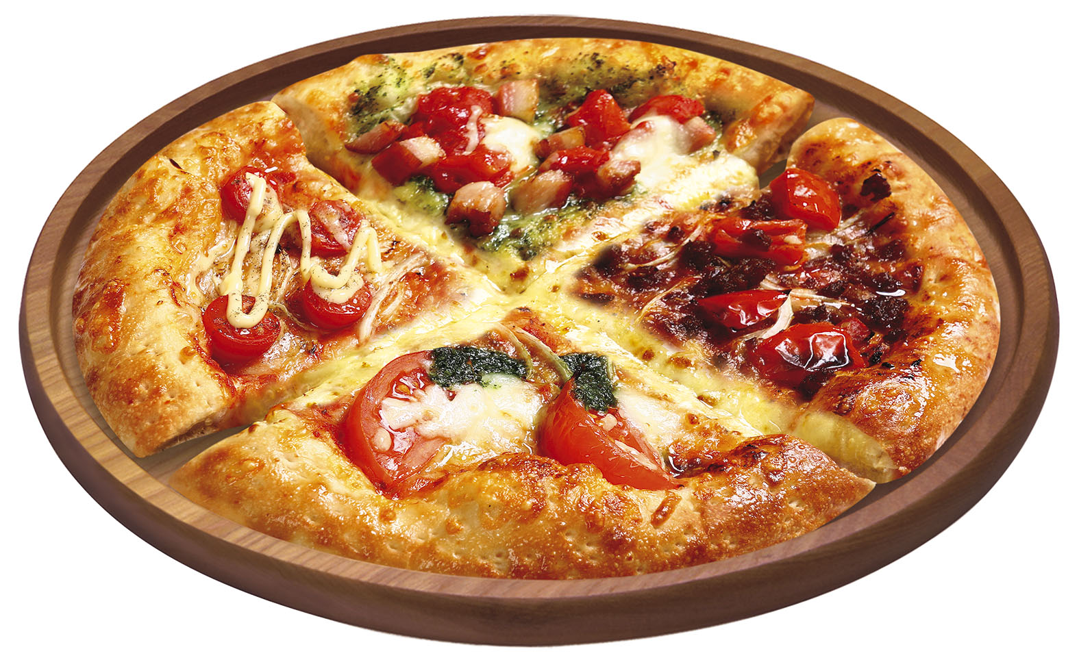 4つのソースを楽しめる美味しいクォーターピザができました。いろんな味をみんなでシェアしませんか。